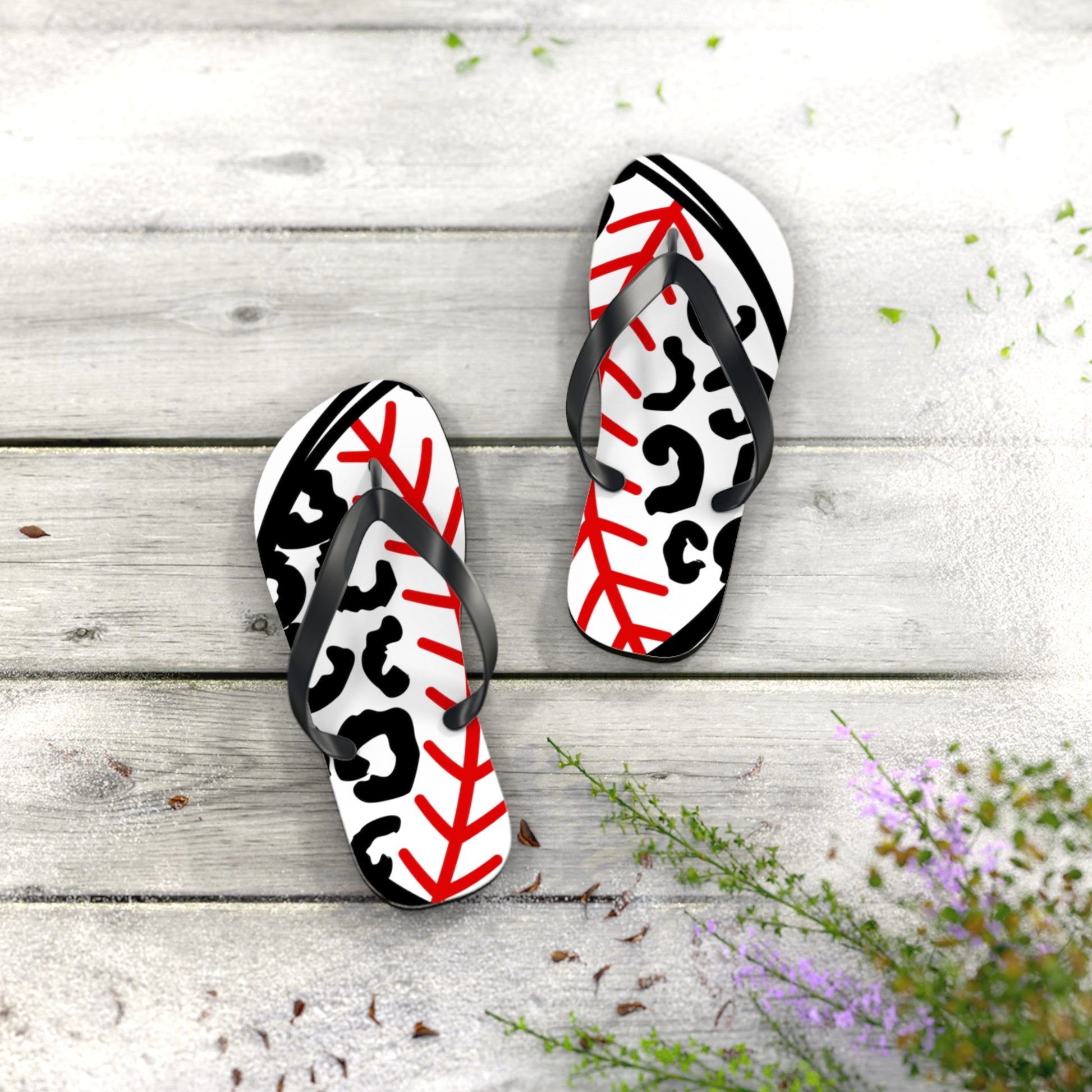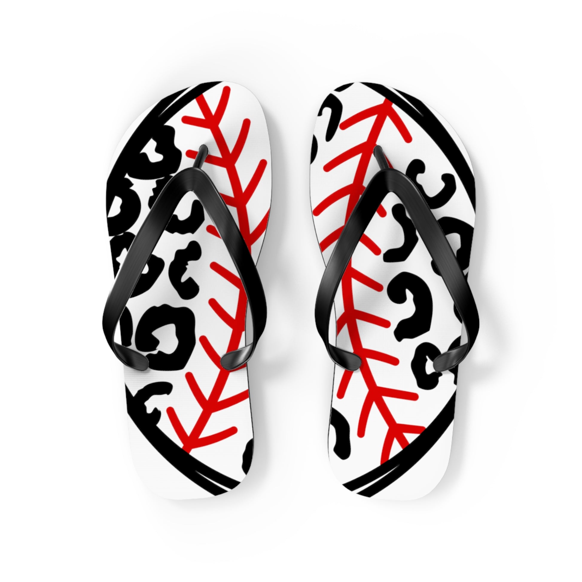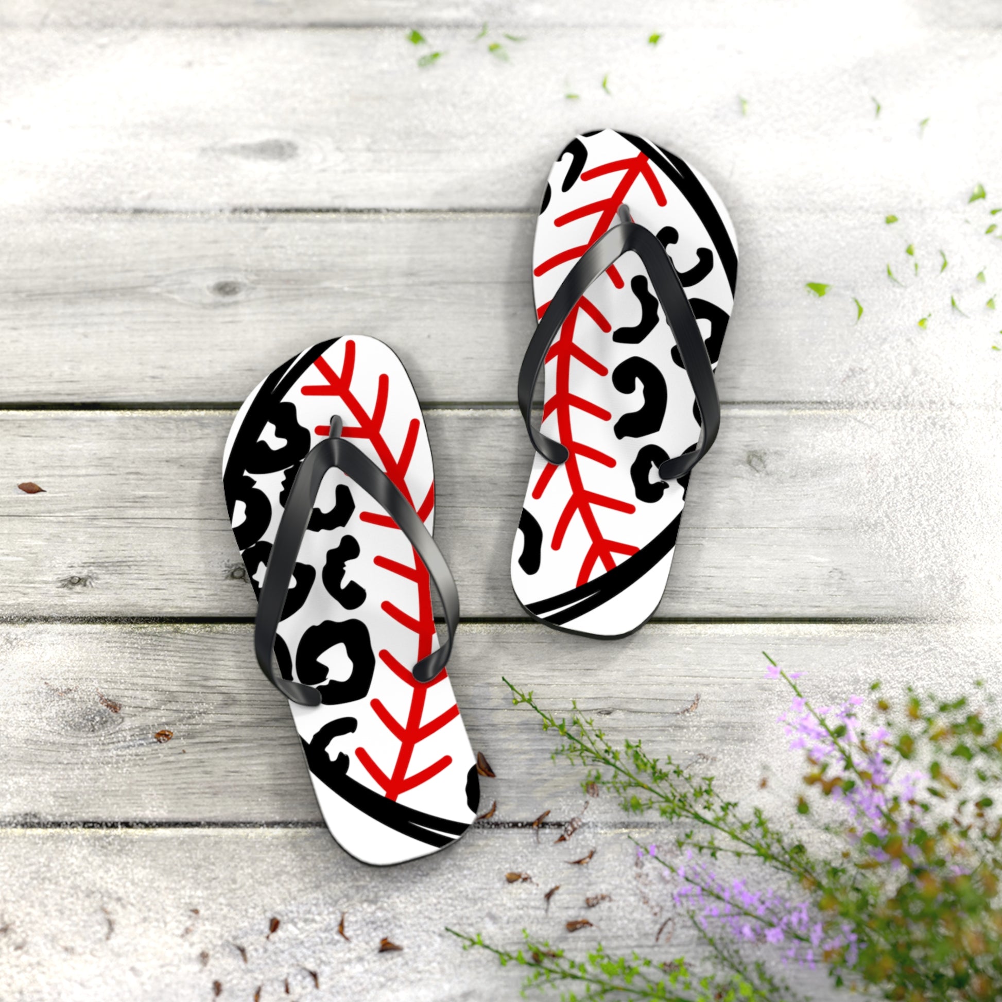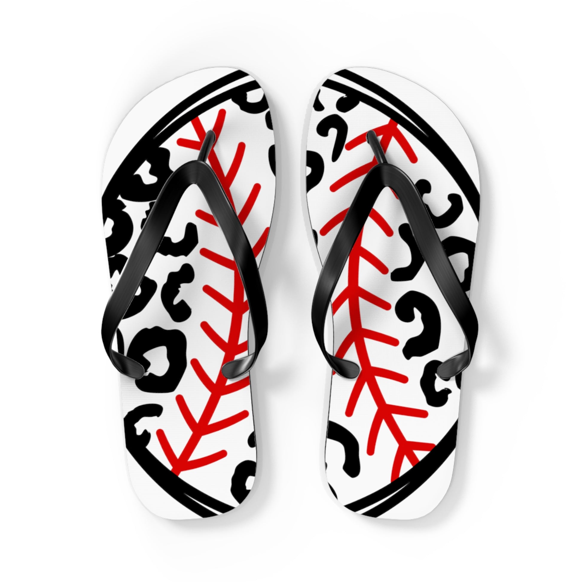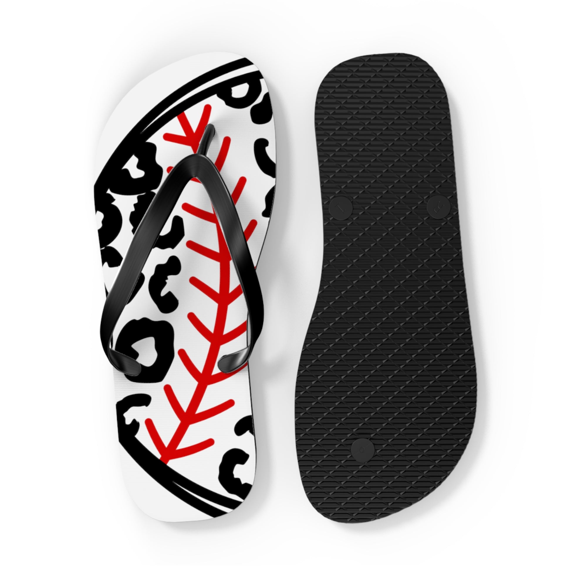 Whether you're heading to the beach, running errands, or simply lounging around, these flip flops are the perfect choice. Step up your style game with our Baseball leopard Flip Flops in White and let your love for baseball shine through in every step you take!